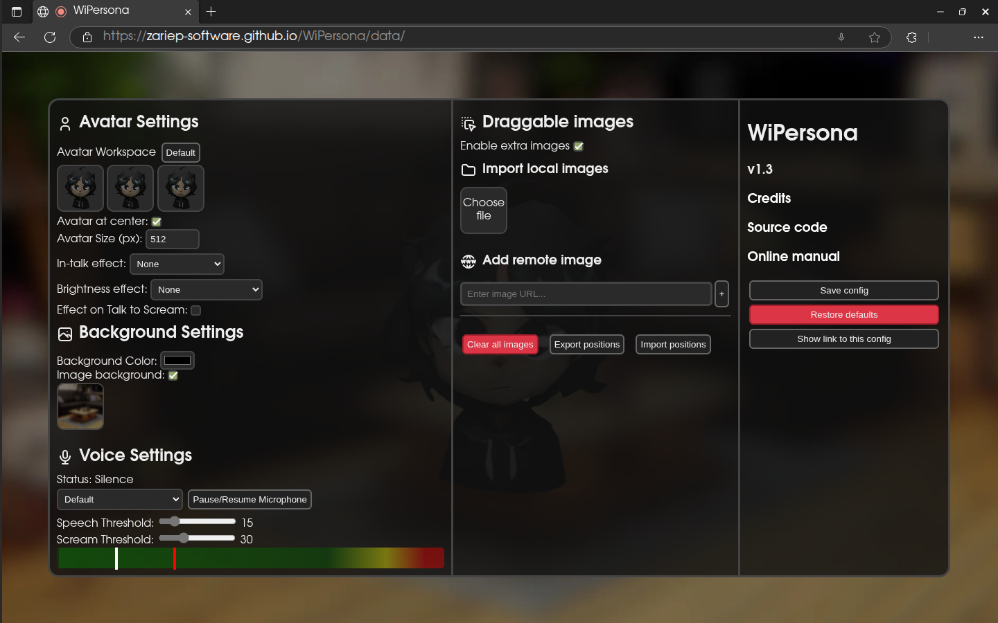 WiPersona is a lightweight tool that let you run a simple VTuber/PNGTuber on web browser